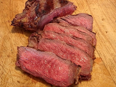 Give or take a couple of months, the steaks used for testing came from 100% grass-fed bison that were 2 1/2 to 3 1/2 years old.
